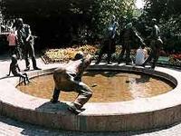 Geldbrunnen是由Prof. Karl Henning Seemann设计,由Sparkasse Aachen资助建筑的. 主要表现了Kreislauf des Geldes(通过转圈的水流). 形态各异的人物表现了不同的人对金钱的态度和与金钱的关系(有钱,想有钱等等). Geldbrunnen引发人们对金钱影响的思索.