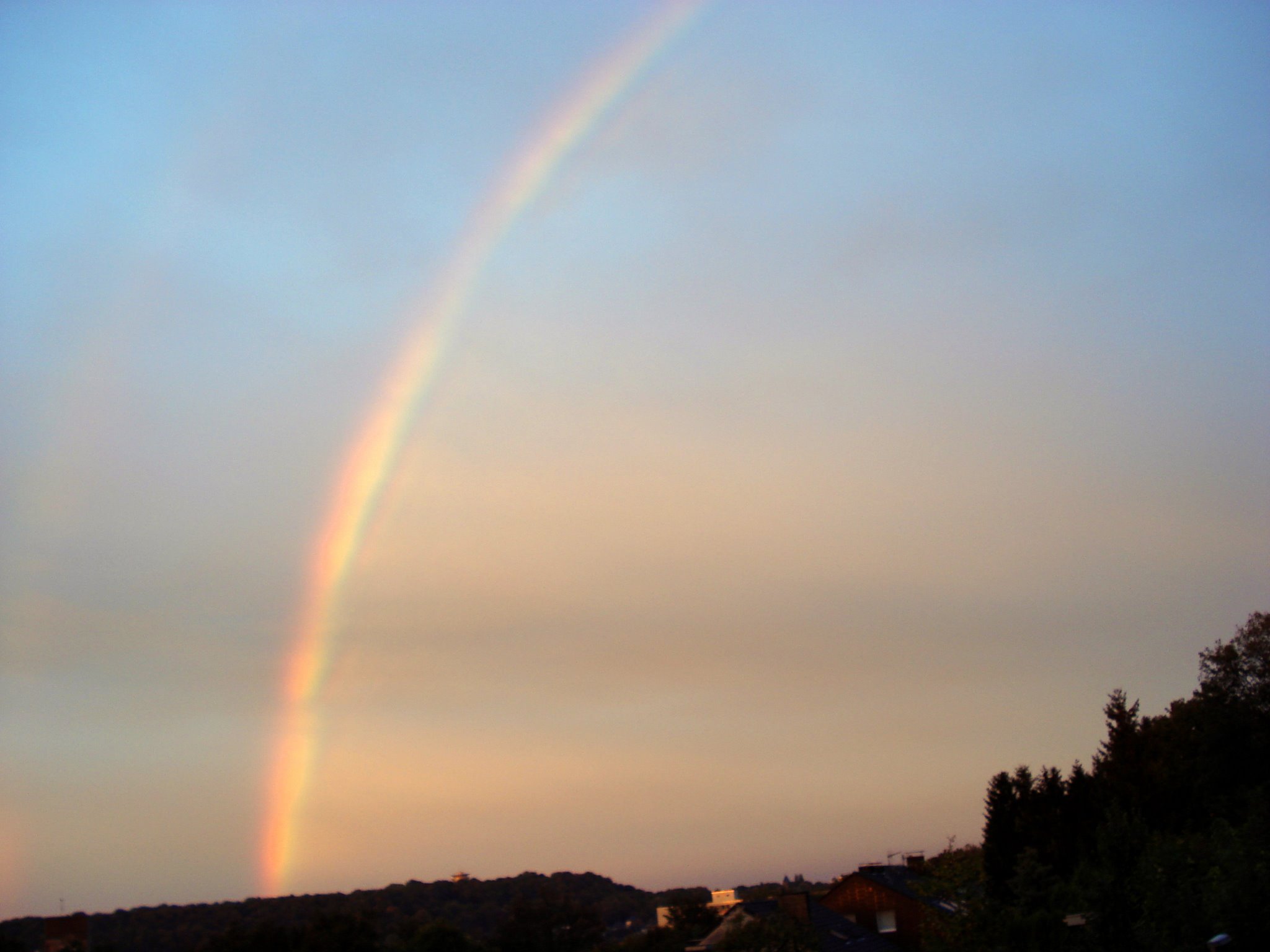 彩虹是没有看到,不过看到窗外很美的日落~