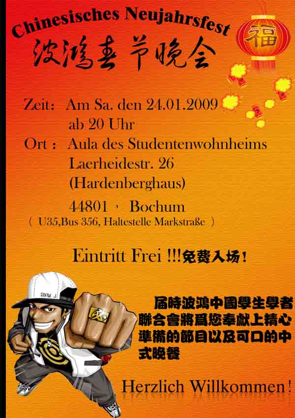 波鸿春晚,24号晚8点,Laerheidestr. 26