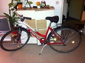 去年8月份120欧打折的时候买的,骑了半年左右,车况很好,骑着挺舒服的。保修有两年。美中不足的是车灯似乎不会亮了,不知怎么回事,不过可以有独立的前后灯可以安装。售65欧。有意者站内短信联系吧,或者01734365821